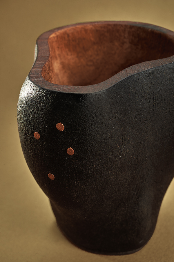 Mate modelo Cervantes X confeccionado en madera de Algarrobo, terminación ebonizado.