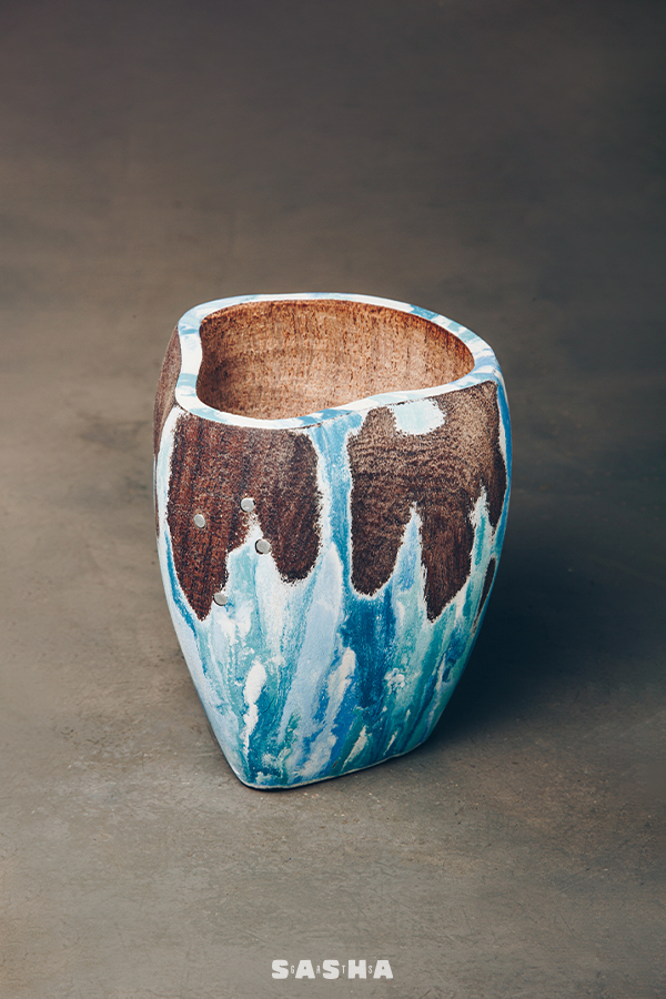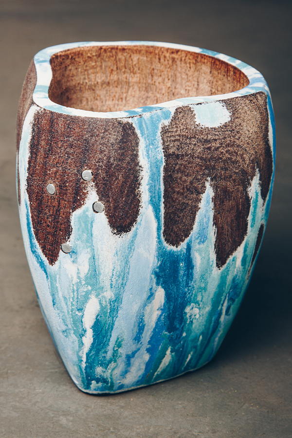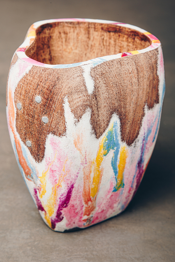 Mate modelo Cervantes confeccionado en madera de Algarrobo, terminación madera natural y pintada.