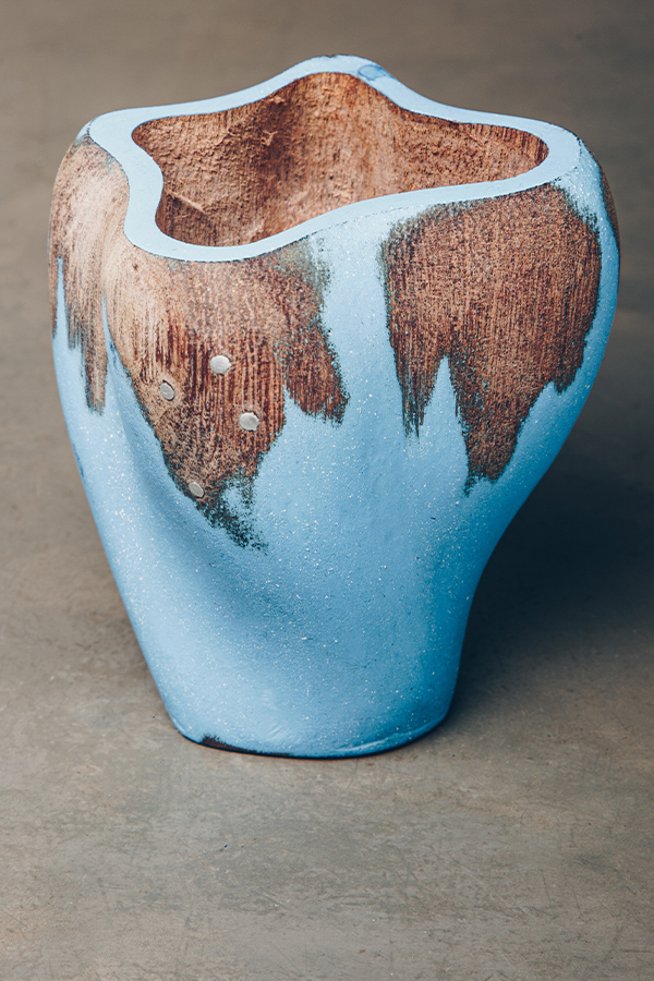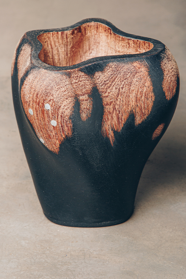 Mate modelo Clásico confeccionado en madera de Algarrobo, terminación madera natural pintada.
