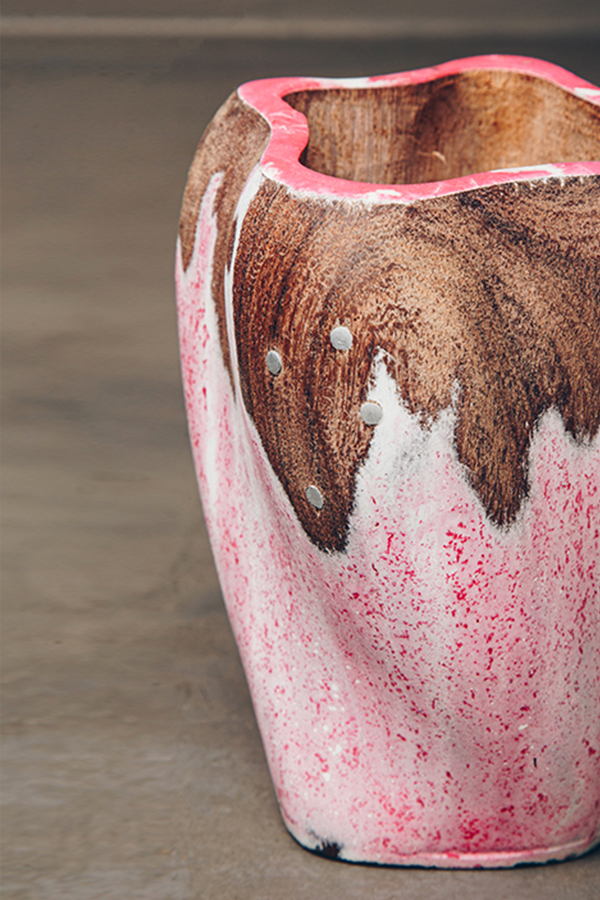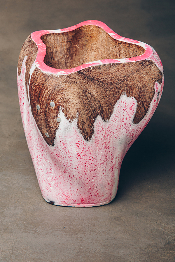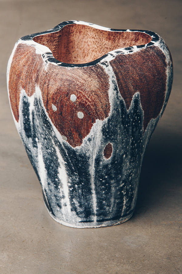Mate modelo Clásico confeccionado en madera de Algarrobo, terminación madera natural pintada.