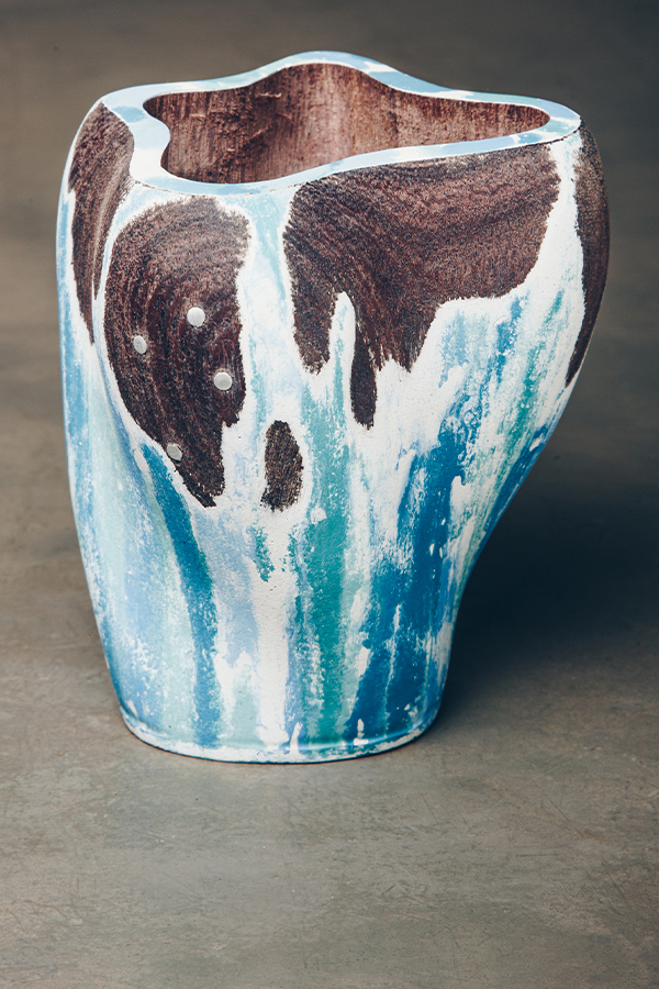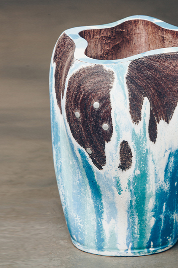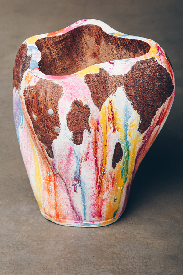 Mate modelo Clásico confeccionado en madera de Algarrobo, terminación madera natural pintada.