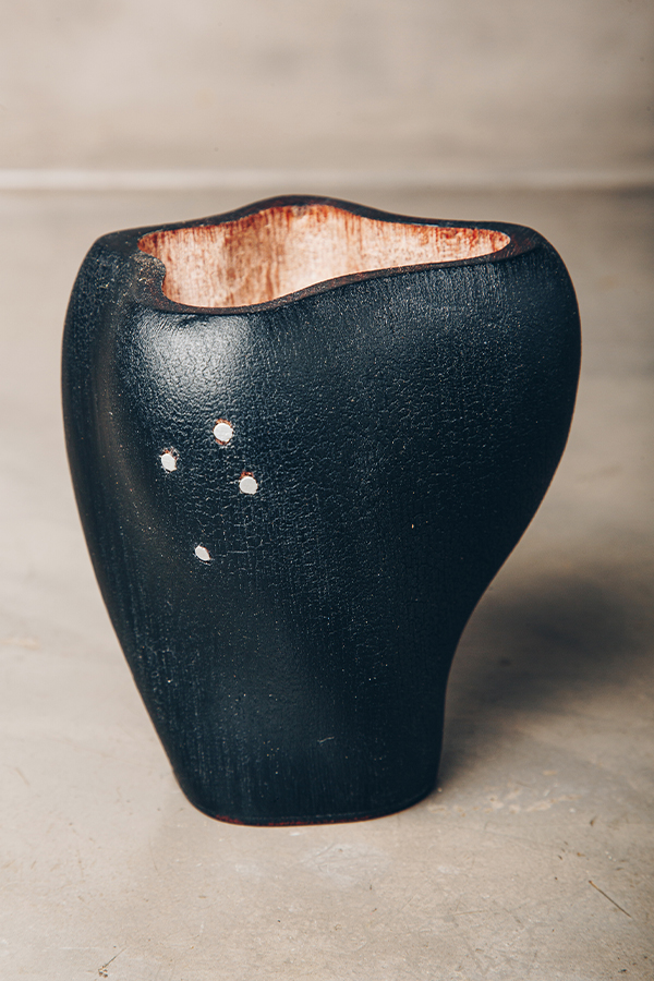 Mate modelo Clásico confeccionado en madera de Algarrobo, terminación ebonizado.